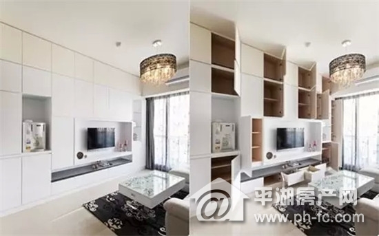 4、既是电视墙,又是收纳墙!再也不担心客厅乱糟糟了!