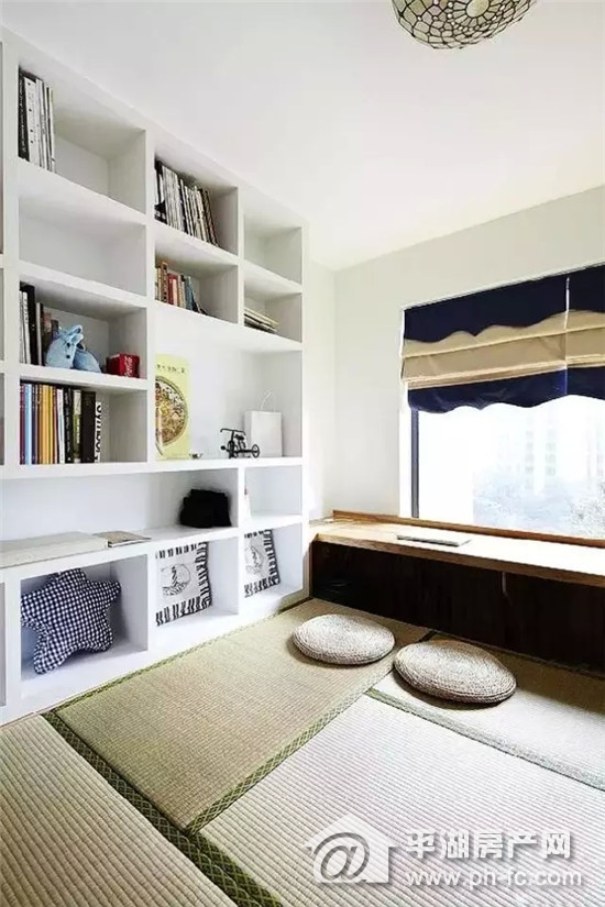 5、拿一个房间做榻榻米,客卧/书房/第二会客厅/储藏室,多种功能集于一身。不得不说,和室是日本集约建筑的精华所在。一个榻榻米,即可以睡觉,招待客人;又可以做书房;还可以和三俩好友一起喝茶聊天;更巧妙的是榻榻米下方强大的收纳功能,过季衣物棉被统统装得下!