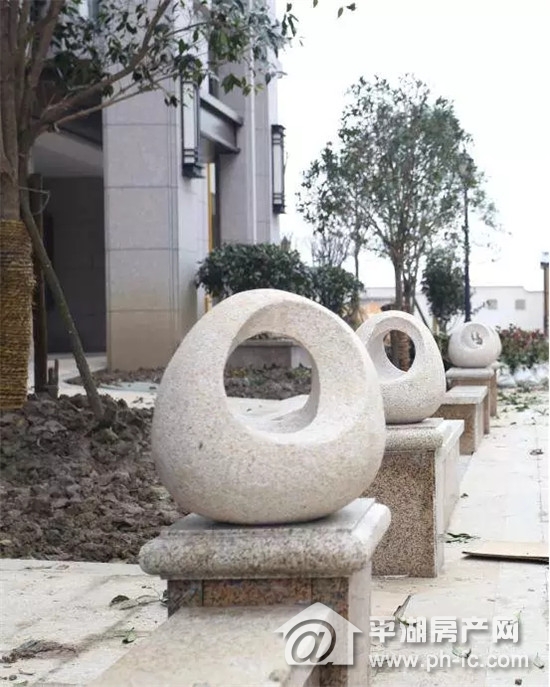 还有这个像蛋蛋一样的大理石雕,是不是也萌爆了!是每个单元门入口的灯哦,没想到吧!