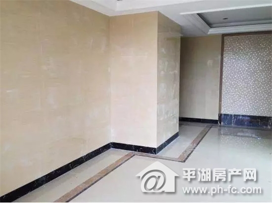 米色的墙面,精致的线条装饰,马赛克拼成的景观墙!每栋入户大堂都是如此精装。虽然还在装修,地面墙面有施工的痕迹。但是已可以看出精美和大气。