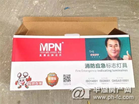 小编在地上发现工人留下的一个盒子,是消防应急灯具。小编不是很懂,可是看包装盒上还有香港影帝代言的头像,应该也是品牌产品吧!