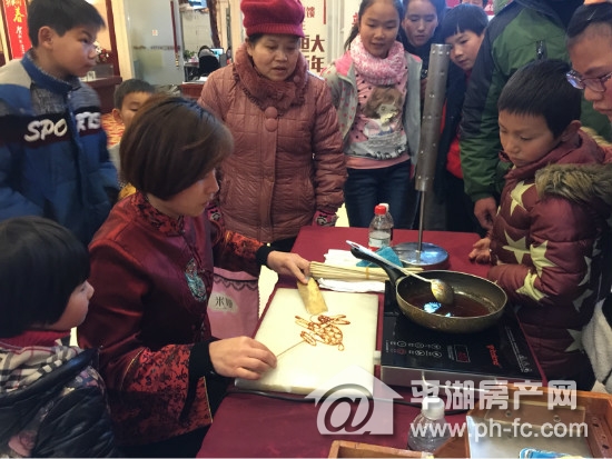 糖画是一种汉族民间手工艺,以糖为材料来进行造型的。所用的工具仅一勺一铲,糖料一般是红、白糖加上少许饴糖放在炉子上用温火熬制,熬到可以牵丝时即可以用来浇铸造型了。身边的老者们直说“小时候只有过年才能吃到啊!”