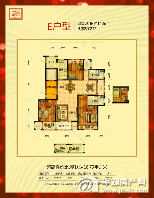 彩虹公馆143方在户型设计上,近1:1的面宽进深比,创领难得的黄金格局,整个户型方正通透,布局合理,更有超大赠送面积任客户扩展空间;厨房阳台相连的设计,餐厅客厅采用双厅连动设计,开放式的餐厅与客厅、起居室很好的融合,整个房屋的空间感也得以延展,不论是家庭用餐,还是朋友一起聚餐都绰绰有余。