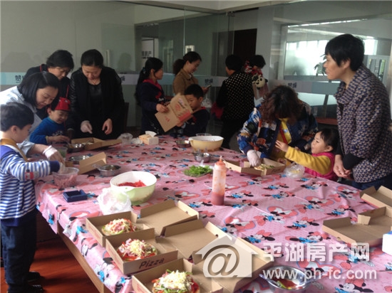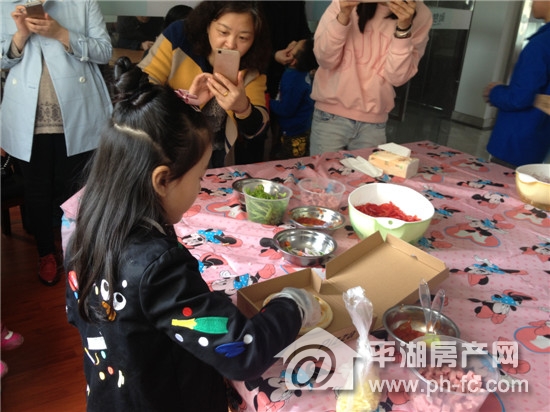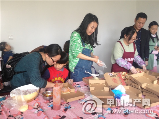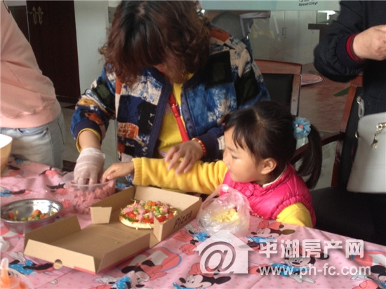 活动正式开始,散发出浓浓香味的披萨配料,清香的洋葱,红绿辣椒和绿豆的配合下色泽美丽诱人,不断刺激着味蕾和视觉。披萨师傅在现场讲解、演示、指导。家长们了解具体制作工序后,便迫不及待的齐齐动手,忙的不亦乐乎。原本互不相识的业主和客户在现场相互分享经验,共同探讨如何制作出色、香、味俱全的披萨。
