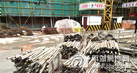 理想城工地内,脚手架的钢管,堆放的整整齐齐。
