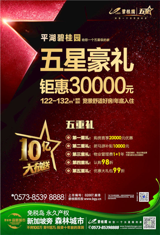 本次活动主要以“碧桂园|五星”为主线,给现场到访的客户展现碧桂园五星内涵,同时介绍项目五星优势及亮点,也为现场媒体和各界介绍“碧桂园·森林城市”项目;碧桂园五星购房节,多重优惠,10亿大放送,让我们把握机会,给自己也给爱的人一个五星级的家。