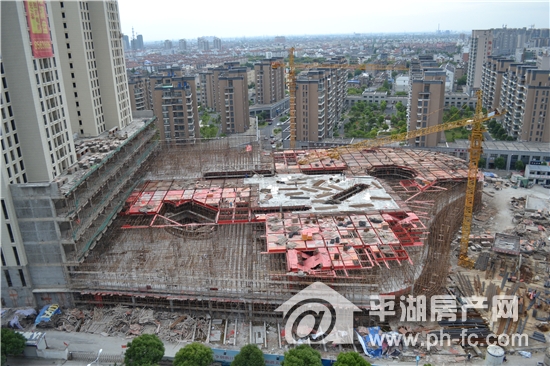 据工程方介绍,现在建设施工的重心已转向商场部分。截至目前,商场主体建造至2层高,地下层部分已全部建成,整个商场部分预计于2016年10月中下旬完工(前提为气候等外在因素不影响施工进度)。