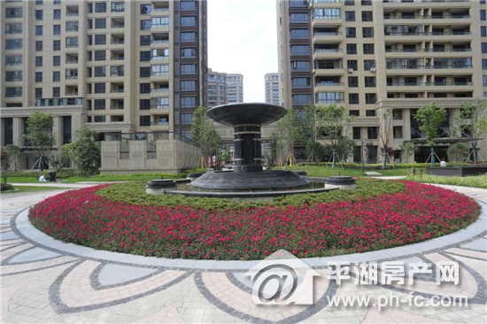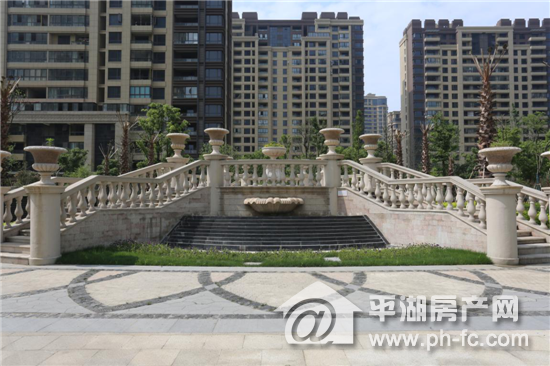 再往前走几步,就看到一个中庭花坛景观,颇为欧式的建筑风格,看起来大气而时尚,瞬间提升了小区的品质感!