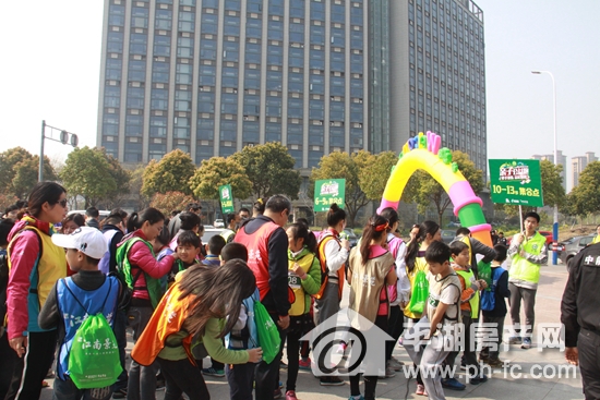 300组家庭来到出发处,按小朋友的年纪分为三组,主持人一声令下,公益跑大部队出发!
