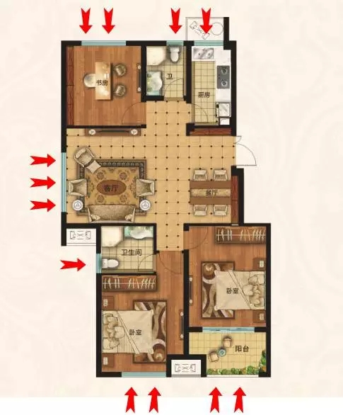 常规90户型基本是中间套,仅依靠南面采光;此户型为边套,三面采光、三面通风,舒适性大大提升!