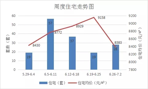 本周住宅共成交28套,较上周环比上涨47.4%;备案均价8383元/平米,环比上周降低8.5%。
