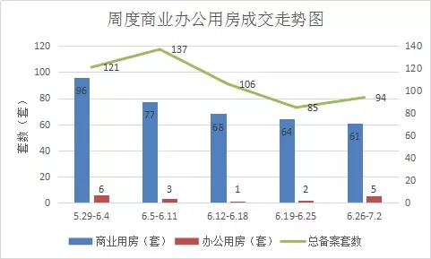 本周成交备案还是以商业为主,占整体整交量的62.5%,商业较上周环比下降14.1%。办公市场一直低位运行,但本周相对成交量较高,较上周环比上涨150%。