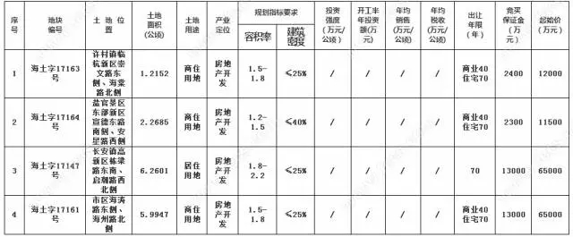 7月6日,海宁再度挂牌4宗宅地,4宗地块总出让面积157385㎡,总起价153500万元,预计将于8月9日出让。