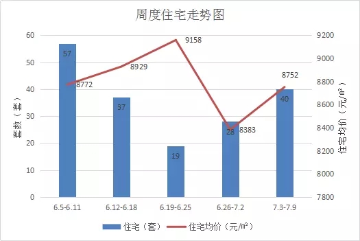 本周住宅共成交40套,较上周环比上升42.9%;备案均价8752元/平米,环比上周上涨4.4%。