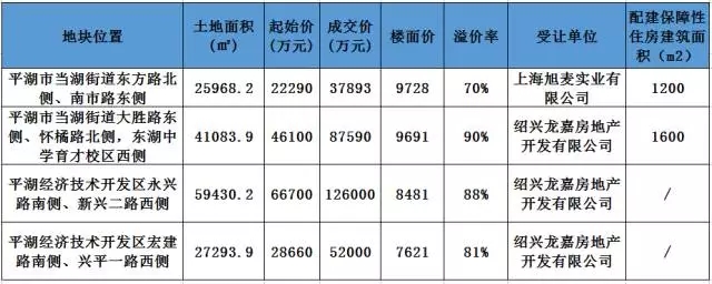 本周共有四块土地成交,我们从表格中不难看出龙湖成为本周***赢家,喜获三宗地块。而位于当湖街道东方路北侧、南市路东侧的地块由旭辉拍得,该地块也拍出楼面价9728元/㎡,溢价率70%,配置保障性住房面积1200㎡的超高价格!成为本周***!