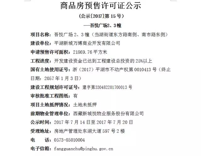 就在14日,新城吾悦广场取得预售证,这也预示着新的商业广场将在平湖大放异彩,而这次新城取得预售证共计335套商业用房出售,而此前新城热烈的预热活动能否为这次开盘带来好运气呢?让我们拭目以待!