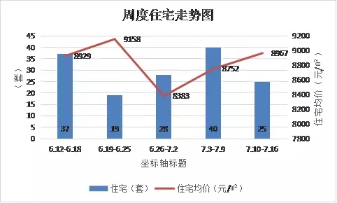 本周住宅共成交25套,较上周环比下降37.5%;备案均价8967元/平米,环比上周上涨2.5%。