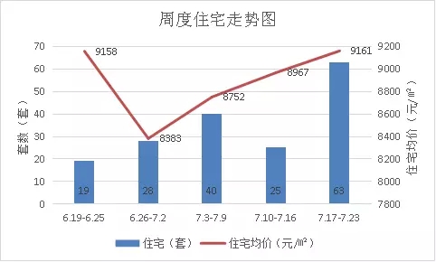 本周住宅共成交63套,较上周环比上涨152%;备案均价9160.86元/平米,环比上周上涨2.2%。