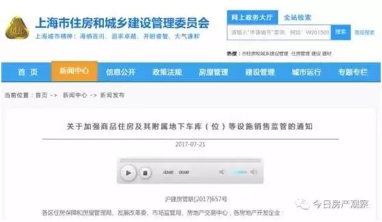 上海市住建委联合上海市物价局***发布《关于加强商品住宅及其附属地下车库(位)等设施销售监管的通知》。明确要求新房及车位销售,实行“一价清”制度。从7月21日发布之日起立即执行。
