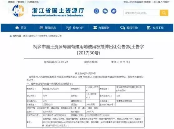 浙江省国土资源厅在其官网挂出的桐乡市的3宗地块,土地用途是住宅为主,明文规定竞得人需自持住宅30%,且自土地取得之日起五年内不得以任何形式进行转让或出售。