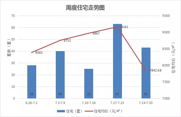 本周住宅共成交43套,较上周环比下降46.5%;备案均价7842.68元/平米,环比上周下降16.8%。