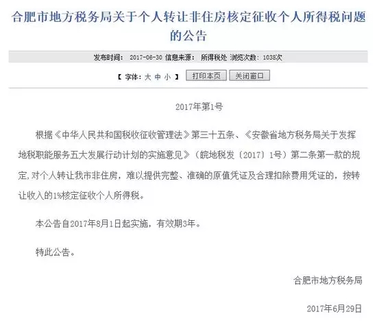 6月29日,合肥市地方税务局发布公告,具体内容如下: