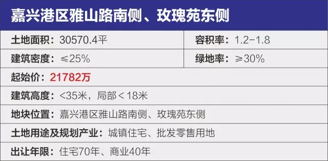 该地块位于嘉兴港区雅山路南侧、玫瑰苑东侧,占地面积30570.4㎡,容积率1.2-1.8,绿地率≥30%,在未来产品结构上可打造沿街商住小高层、内部住宅多层的结构
