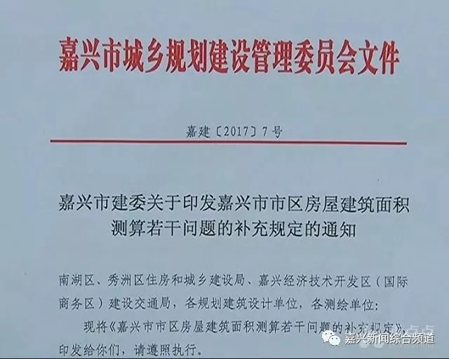 4、嘉兴:12月中旬实行共有建筑分摊的规定