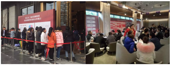 12月16日,在江南悦售楼中心举行了盛大的开盘仪式,上午9:00仪式正式开始,很多自上海、杭州、温州、台州等地的客户依次排队,入场选房。截止当天中午11点左右,现场销控一片火红,首开过半,整体预售均价约15800元/平米,是平湖***突破目前限价的楼盘。