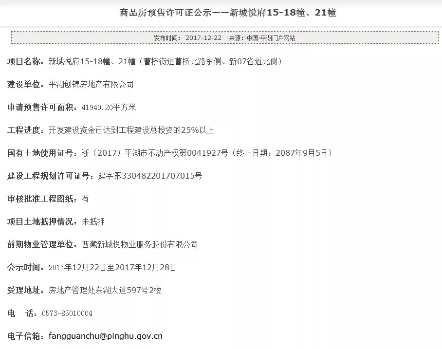 新城悦府位于曹桥街道曹桥北路东侧、新07省道北侧。该项目预售面积41940.20㎡,此次预售证公示15-18幢、21幢#。