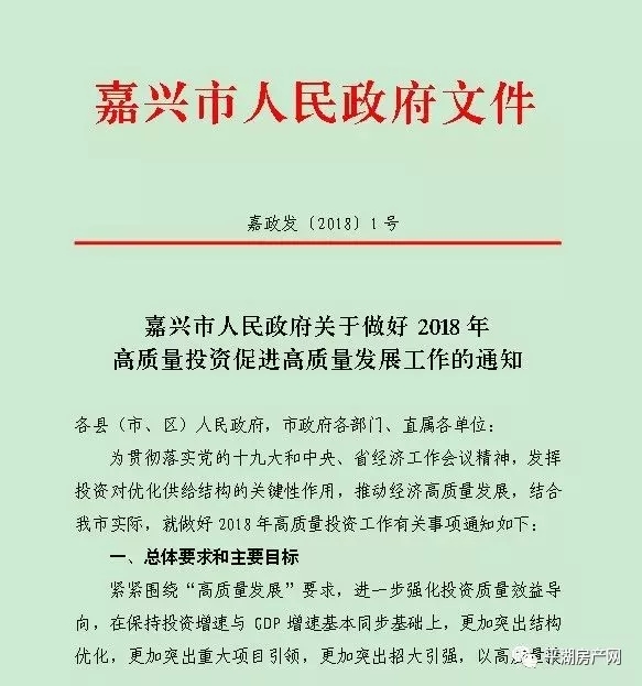 5、嘉兴:嘉兴政府发布2018年1号文件
