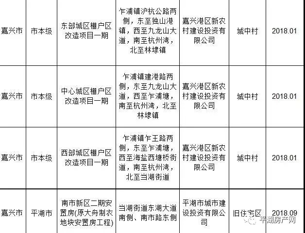 近日,浙江省住房和城乡建设厅公布《浙江省2018年度棚户区改造计划开工项目清单(第三批)》,共175个项目,其中和平湖有关的4个(平湖1个,乍浦镇3个)。