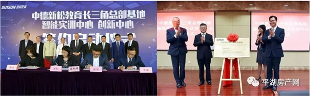 5月8日下午,金山、平湖、新松集团和平台公司四方签署了《中德新松教育科技集团长三角总部运营公司投资协议》,中德新松教育长三角总部基地智能实训中心和创新中心正式在张江长三角科技城落地。与此同时,中德新松长三角总部基地德国焊接协会认证培训中心也正式在我市揭牌成立。中德新松教育科技集团总裁范存艳,德国焊接协会首席运营官博肯,金山区委常委、副区长张权权,我市领导祁海龙、仲旭东、钟伟华出席签约揭牌活动。