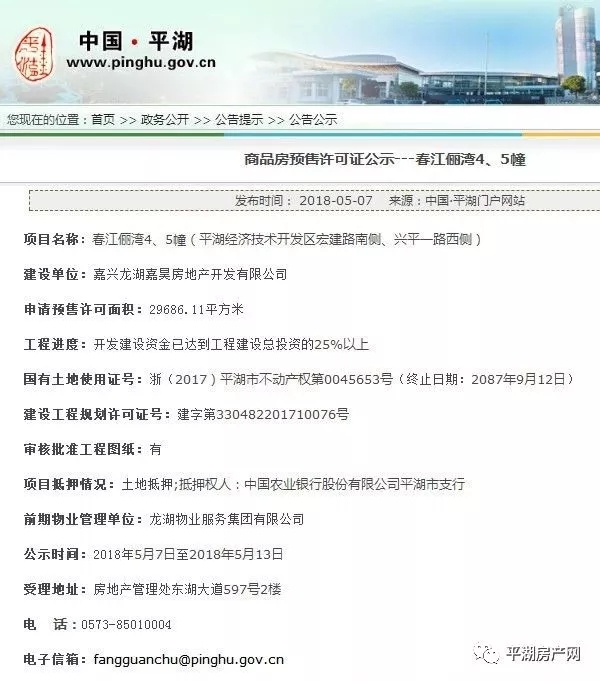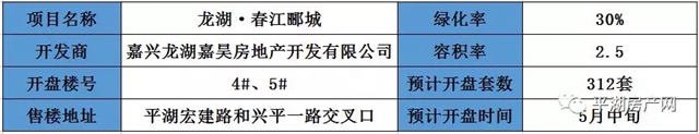 龙湖·春江郦城位于平湖市宏建路与兴平一路交叉口。项目容积率2.5,绿化率30%。本次开盘预计推出4#、5# ;预计房源约312套,并于今日(5月14日)对外公开认筹。