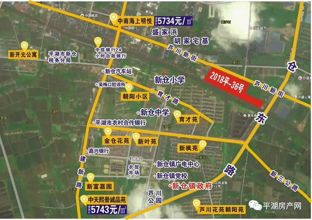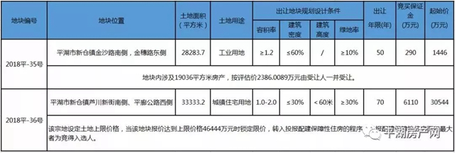 本次挂牌地块2018平-36号位于平湖市新仓镇芦川新街南侧、平廊公路西侧 ,占地面积33333.2㎡,容积率1.0-2.0,建筑高度<60米,起始总价30544万元,起拍楼面价4582元/㎡,可打造多层住宅或小高层。同时,本次挂牌土地设有上线价格,报价达到46444万元锁定限价,转入投报配建保障性住房程序。预将于7月3日进行网上竞拍