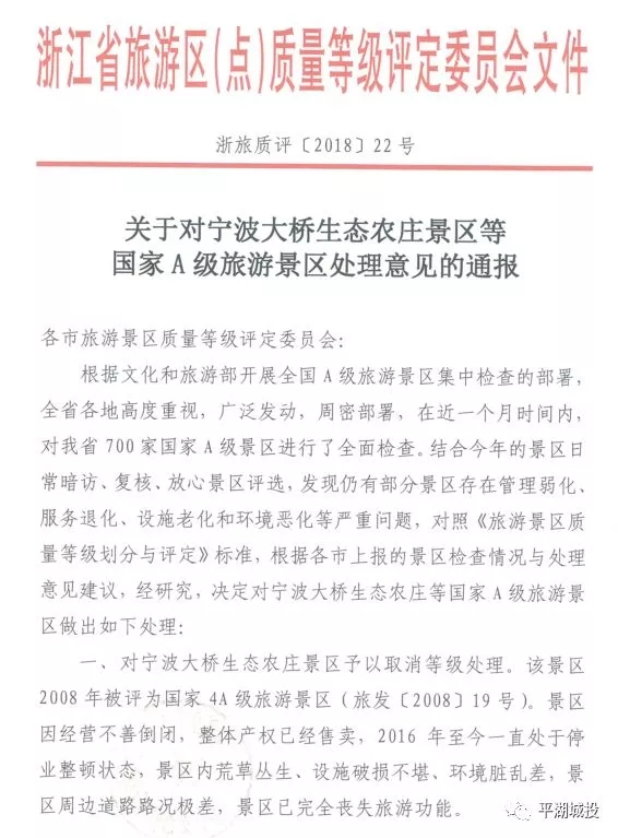 近日,浙江省旅游区(点)质量等级评定委员公布全省700家A级景区复核暗访成绩,全省4A级景区中1家被取消等级、7家被警告、6家被通报批评,29家3A级以下景区也相应受到取消等级、警告和通报批评等处罚,而平湖市东湖景区顺利通过复核。接下来,将结合评委专家提出意见和建议,持续用力补好短板,深入巩固国家4A景区标准化管理。