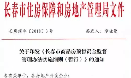 5、长春:商品房预售资金监管额度为项目总预售款的30%
