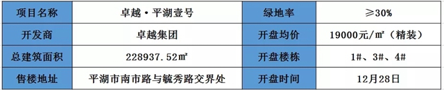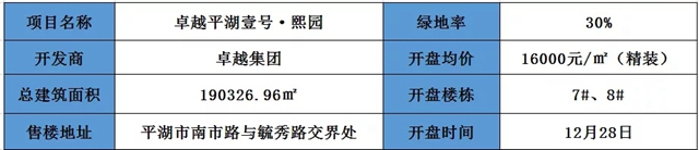 12月28日,卓越·平湖壹号与熙园双盘齐发,该楼盘位于平湖市当湖街道毓秀路北侧、大胜路东侧,总占地面积约61610㎡,容积率2.799,绿化率30.2%,本次开盘楼栋为1#、3#、4#,共计房源约352套。均价在19000元/㎡含精装修。