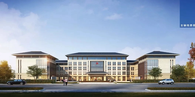 整体布局上借鉴传统院落组群,中正大气。教学行政区、廉政教育中心、报告厅和后勤住宿等沿路主、次入口轴线展开布置。U型中轴对称的教学楼与报告厅、内庭院、沿河广场等形成虚实两条轴线,两条轴线一虚一实,相应相生,在有限有限的场地营造无线的空间气象。