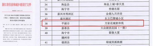 2019年1月4日,浙江省城建厅公布了“2018年度浙江省园林式居住区”榜单,全省共有92个小区上榜。其中,我们平湖的万家花城家和苑,荣膺“2018年度浙江省园林式居住区”称号。在这份公布的名单中,家和苑是平湖***上榜的小区。