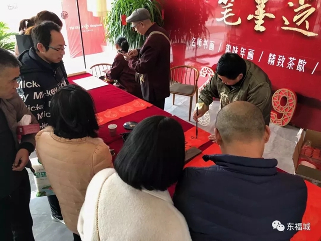 1月20日下午13:00,“书香映新春 笔墨送祝福”活动正式开始,现场热闹非凡。 在书法老师毛笔的一起一落间,寓意美好的新年的金句吉言在对联上铺陈开来,获得了在场的一片赞叹之声。更有糖画活动让小朋友品尝,十分喜庆。