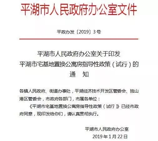 农民住房改善行动是我市初心行动的重要内容。日前,《平湖市推进农民住房改善行动实施方案》发布后,宅基地如何置换公寓房倍受大家关注。近日,《平湖市宅基地置换公寓房指导性政策(试行)》出台。其中对这几个方面:1、置换对象 2、置换面积 3、置换价格 4、置换方式 5、置换计划 6、置换程序等具体事宜进行详细说明。