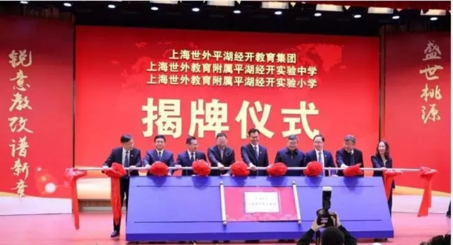 3月29日下午,上海世外平湖经开教育集团、上海世外教育附属平湖经开实验中学、上海世外教育附属平湖经开实验小学举行揭牌仪式,标志着平湖经开教育全面接轨上海迈出了重要且关键的一步。嘉兴市教育局副局长王立玮,平湖市领导祁海龙、蔡国平、柯卫明、方晓烈、许静,开发区领导沈炳兴、沈锋、沈佳赟等出席揭牌仪式。