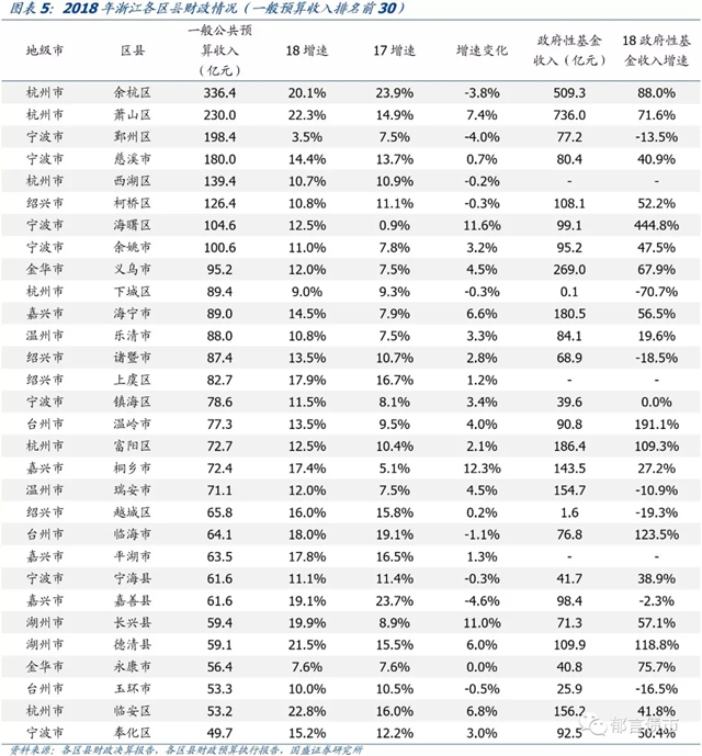 附:2018年浙江各区县财政情况(包含区和县市)