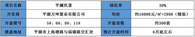 平澜玖著,位于平湖市上海塘路与福臻路交汇处,该项目绿地率为30%,本次开盘楼栋为5#、6#、8#、11#,预售套数约300套,均价16000元/㎡+2980元/㎡精装,预计将于6月底开盘。