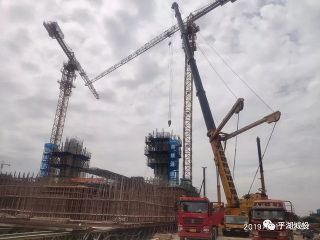 3、本地:东方大桥项目关键节点主塔钢锚箱整体吊装顺利完成