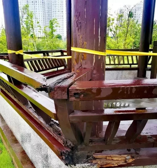 柱子、扶手腐蚀严重(图片来源:乐享平湖)