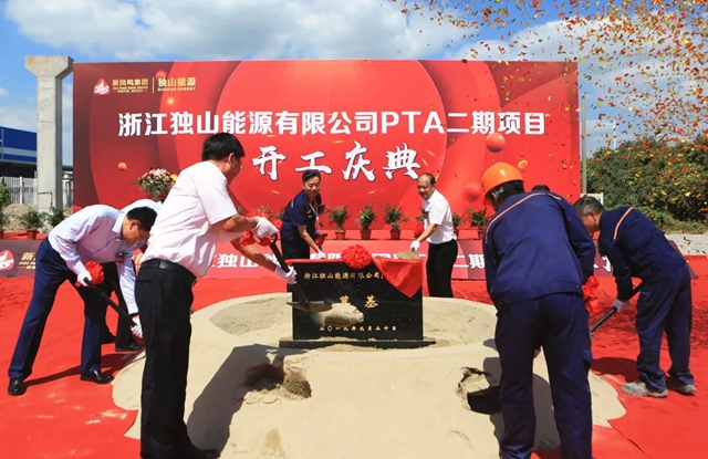 ▲浙江独山能源有限公司年产220万吨绿色智能化PTA项目(二期)举行开工仪式