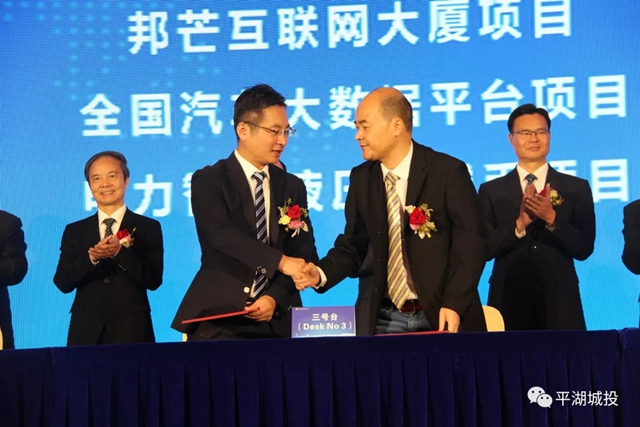 ▲城投集团董事长沈杰与邦芒集团签订南市新区邦芒互联网大厦项目合作意向协议