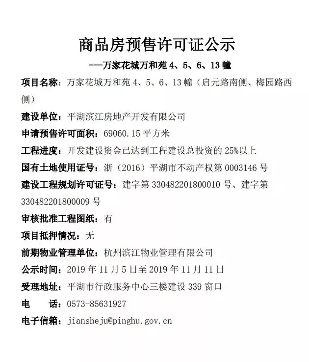 滨江万家花城·万和苑,售楼处位于梅园路与池海路交叉口西侧,该项目绿地率为≤30%,容积率2.79-3.01,本次开盘楼栋为4#、5#、6#、13#,共计560套,面积段为89-168㎡,预售均价约14400元/㎡(含车位),预计将于11月中旬开盘。